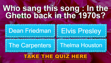 If you can answer "Who sang this song : "Rocky Mountain High" back in the 1970s?" and maybe even "Who sang this song : "In the Ghetto" back in the 1970s?" there is a good chance that you're going to beat the average score of 6/10 in this trivia quiz