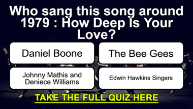 6/10 is the score to beat in this trivia quiz to put yourself over the average quiz taker. But you're probably going to be able to answer questions "Who sang this song around 1979 : "How Deep Is Your Love"?" and "Who sang this song around 1977 : "Breaking Up Is Hard to Do"?" easy!