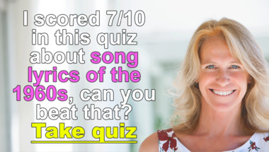 6/10 is the score to beat in this 1960s Song Lyrics quiz to put yourself over the average quiz taker. But you're probably going to be able to answer questions "The Everly Brothers had a 60s hit about whose clown?" and ""Little darling, it's been a long cold lonely winter" is from which Beatles song?" easy!