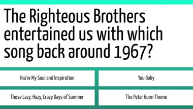 In this fun trivia quiz we're going to ask questions like "Which Troggs song has the line 'You make everything groovy'?" and "Which film was the 1986 smash hit 'Take My Breath Away' used for?".