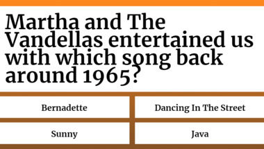If you can answer "Martha and The Vandellas entertained us with which song back around 1965?" and maybe even "The Beatles entertained us with which song back around 1965?" there is a good chance that you're going to beat the average score of 4/10 in this 1960s Songs quiz